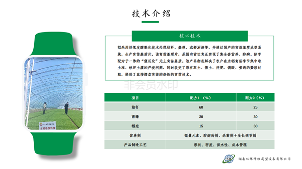 本產(chǎn)品針對水稻旱育苗大量挖取耕層土,耕層破壞嚴(yán)峻的現(xiàn)實,利用秸稈、蘑菇菌糠、稻殼、沼渣等農(nóng)林廢棄物經(jīng)過工廠化快速熟化,賦予全套的營養(yǎng)、防病、除草配方,制造成新型的嶄新的“無土育苗基質(zhì)”。